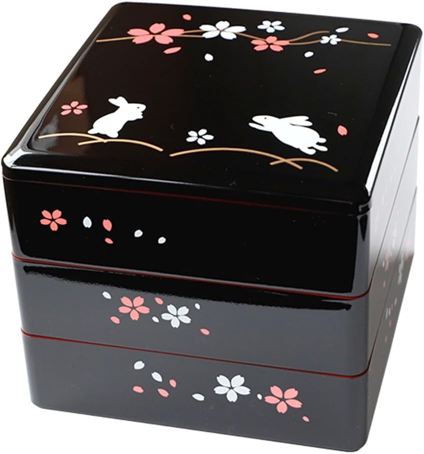 こちらは、艶やかな黒と朱色内側の紀州塗り三段重で、おせちや行楽弁当を華やかにする日本製の重箱。